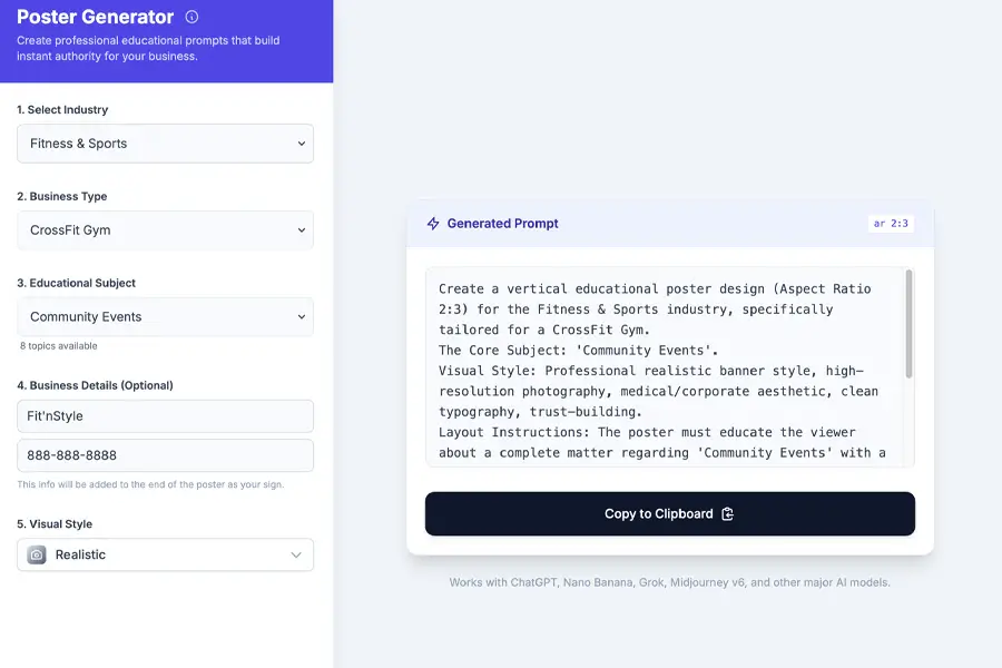 Create ready-to-use image prompts designed specifically for local promotions, offers, and announcements. Perfect for generating eye-catching visuals in any AI image tool without guesswork.